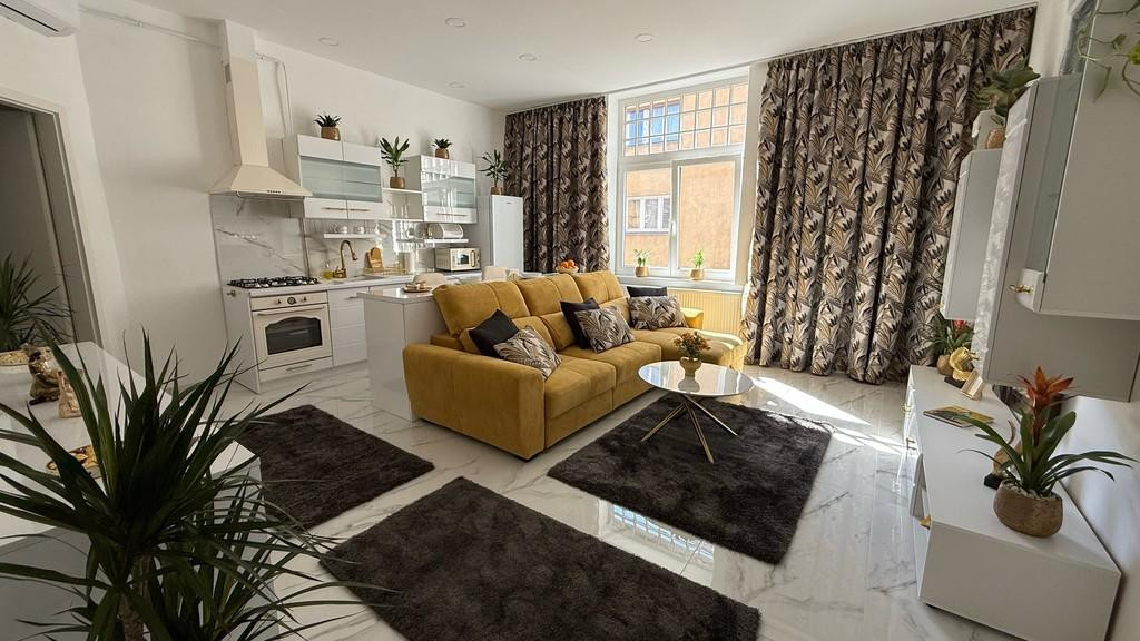 Budapest V. kerületben, rendezett liftes társasházban, kiváló lokációban, Irányi utca 10. szám alatt, az Irányi utca – Kéményseprő utca sarkán, közvetlenül a Váci utca mellett, a Dunától és Erzsébet hídtól két perc sétára két szobás (amerikai konyhás nappali, hálószoba, mindkettő ablaka utcára néz) kis alapterületen tágas elrendezésű, délnyugati tájolású 3. emeleti lakás eladó. A lakás teljes körű műszaki (fűtés, víz, villany) korszerűsítésen és esztétikai felújításon (új külső-belső nyílászárók, új padlóburkolat, festés) esett át, háztartási gépekkel (mosó-szárítógép, mosogatógép, beépített sütő-főzőlap, páraelszívó, hűtő, mikrohullámú sütő, hűtő-fűtő klíma berendezés, elektromos kandalló, QLED TV, falra szerelhető kézi porszívó) teljesen felszerelt. Az ár tartalmazza a képeken látható teljes berendezést. |