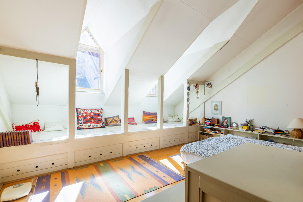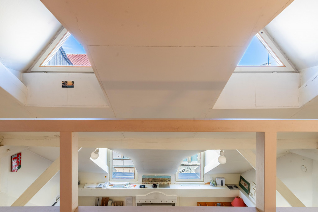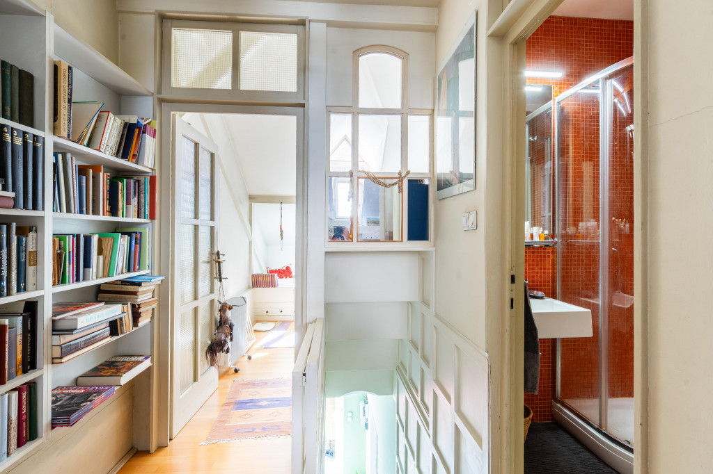 Az alsó szinten előszoba, külön, udvarra néző ablakos konyha, egy hálószoba, utcára néző nappali és fürdőszoba található, a tetőtérben két szoba és egy nemrég felújított fürdőszoba kapott helyet, míg a galériaszint további élettérként funkcionál. Ezek együttese különleges atmoszférát teremt.
