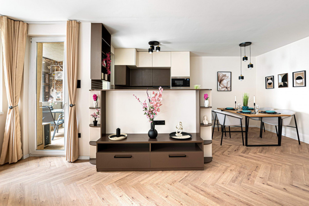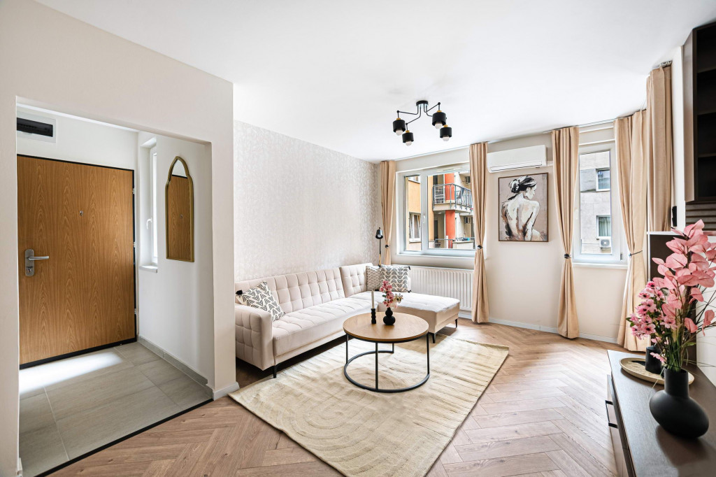 AIRBNB-ENGEDÉLLYEL rendelkező lakás eladó közvetlenül a tulajdonostól! A rövidtávú kiadás jelenleg is engedélyezett egy üzemeltető cégen keresztül, így azonnal extra bevételt termelhet befektetőként! A lakásról: A 69 m²-es, teljeskörűen felújított és lakberendező által megálmodott otthon az Akácfa utca egyik legjobb házában található. Az amerikai konyhás nappalihoz két külön nyíló hálórész, külön WC, modern fürdőszoba, valamint tároló tartozik. A lakás két, egyenként kb. 4 m²-es erkélyével és É-D-i fekvésével tágas, világos, mégis csendes. A kényelmet klíma, új beépített gépek (hűtő, sütő, főzőlap, elszívó), valamint minőségi burkolatok és világítások biztosítják. Mindkét hálóból kijárat nyílik az utcai erkélyre, a nappaliból pedig a belső udvarra nézőre. A fürdőben új kád és beépített mosdó található, külön helyiségben a WC és egy kézmosó. A lakás hang- és hőszigetelt műanyag nyílászárókkal szerelt, a fűtést központi kazán biztosítja, egyedi mérőkkel és alacsony rezsivel. A közös költség 50 000 Ft/hó, amely tartalmazza a fűtésátalányt, biztosítást, takarítást, szemétszállítást és karbantartást is. A házhoz saját parkoló is tartozik, ahol hely bérelhető vagy vásárolható. - A környékről: A lakás a VII. kerület belső részén, az Akácfa utcában található, kiváló infrastruktúrával. Pár lépésre: Spar, DM, gyógyszertár, éttermek, kávézók, valamint a 4-6-os villamos, trolibusz és metró is könnyen elérhető. A Városliget közelsége miatt tökéletes választás azoknak, akik szeretik a városi életet, de fontos számukra a természet és a kikapcsolódás is. - Kinek ajánlom? Ideális választás fiatal pároknak vagy befektetőknek, akik értékálló, azonnal kiadható ingatlant keresnek a belvárosban. A lakás tehermentes és azonnal költözhető. A vételár tartalmazza a teljesen új beépített konyhát és fürdőszobabútorokat. Igény esetén a teljes berendezés (bútorok, lámpák, lakástextilek) külön megállapodás alapján megvásárolható. Gyere el, és nézd meg személyesen – garantálom, hogy a valóságban még szebb, mint a képeken! |