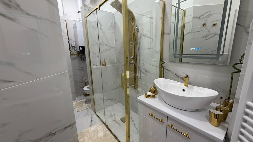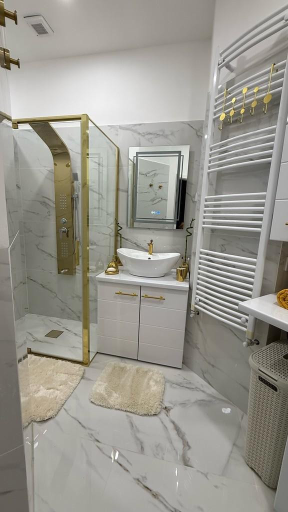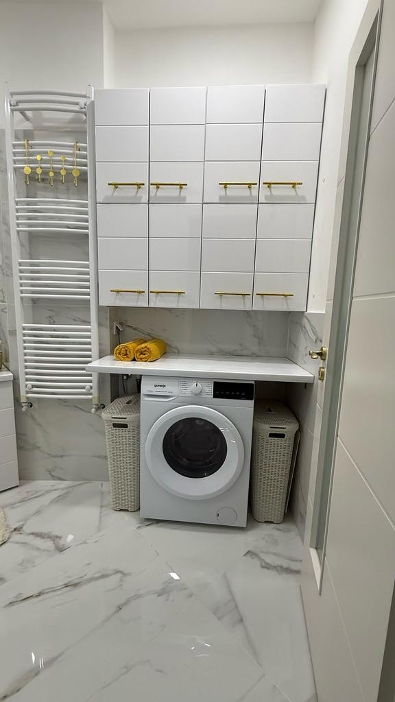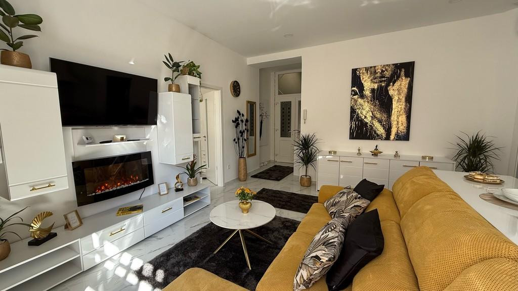 Budapest V. kerületben, rendezett liftes társasházban, kiváló lokációban, Irányi utca 10. szám alatt, az Irányi utca – Kéményseprő utca sarkán, közvetlenül a Váci utca mellett, a Dunától és Erzsébet hídtól két perc sétára két szobás (amerikai konyhás nappali, hálószoba, mindkettő ablaka utcára néz) kis alapterületen tágas elrendezésű, délnyugati tájolású 3. emeleti lakás eladó. A lakás teljes körű műszaki (fűtés, víz, villany) korszerűsítésen és esztétikai felújításon (új külső-belső nyílászárók, új padlóburkolat, festés) esett át, háztartási gépekkel (mosó-szárítógép, mosogatógép, beépített sütő-főzőlap, páraelszívó, hűtő, mikrohullámú sütő, hűtő-fűtő klíma berendezés, elektromos kandalló, QLED TV, falra szerelhető kézi porszívó) teljesen felszerelt. Az ár tartalmazza a képeken látható teljes berendezést. |