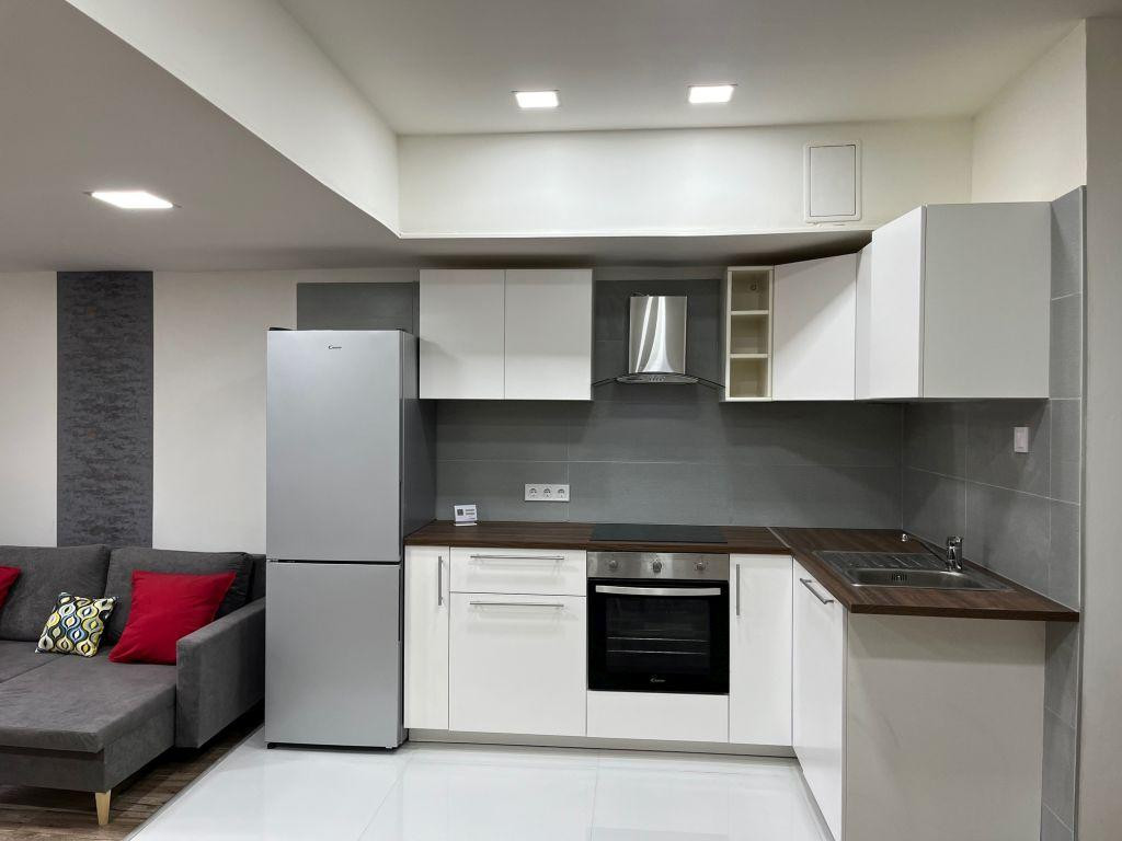 A 45 négyzetméteres lakás egy tágas amerikai konyhás nappaliból és a 25 négyzetméteres galérián kialakított 2 hálószobából áll, így ideális otthon lehet egy párnak vagy egy kisebb családnak. A nappali nagy ablakai természetes fényt engednek be, így az egész lakás világos és barátságos hangulatot sugároz.