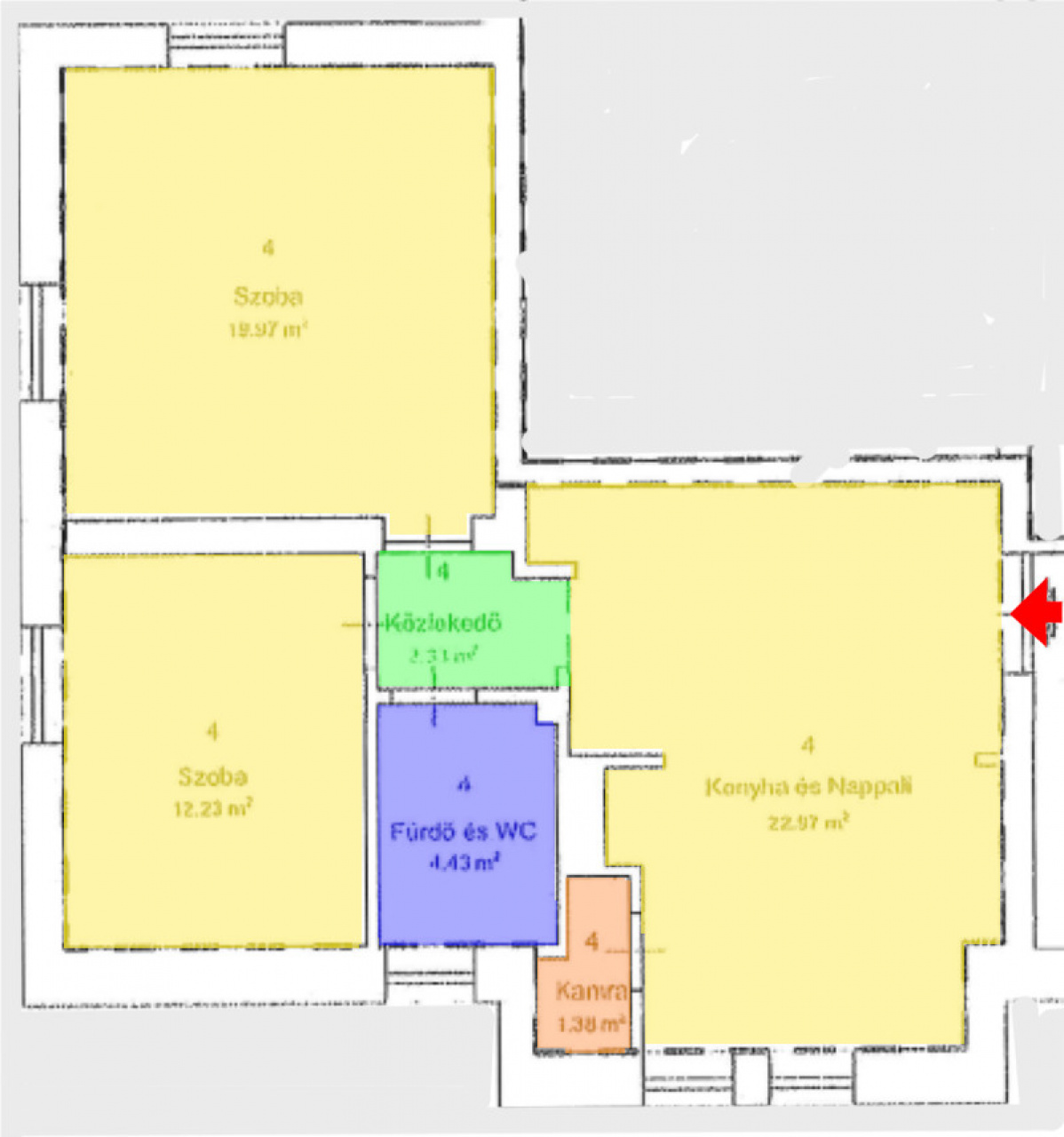 A lakás nettó alapterülete 63 nm, nappali két hálós (N+2), Északkelet, Délnyugat Délkeleti tájolású ablakokkal rendelkezik.