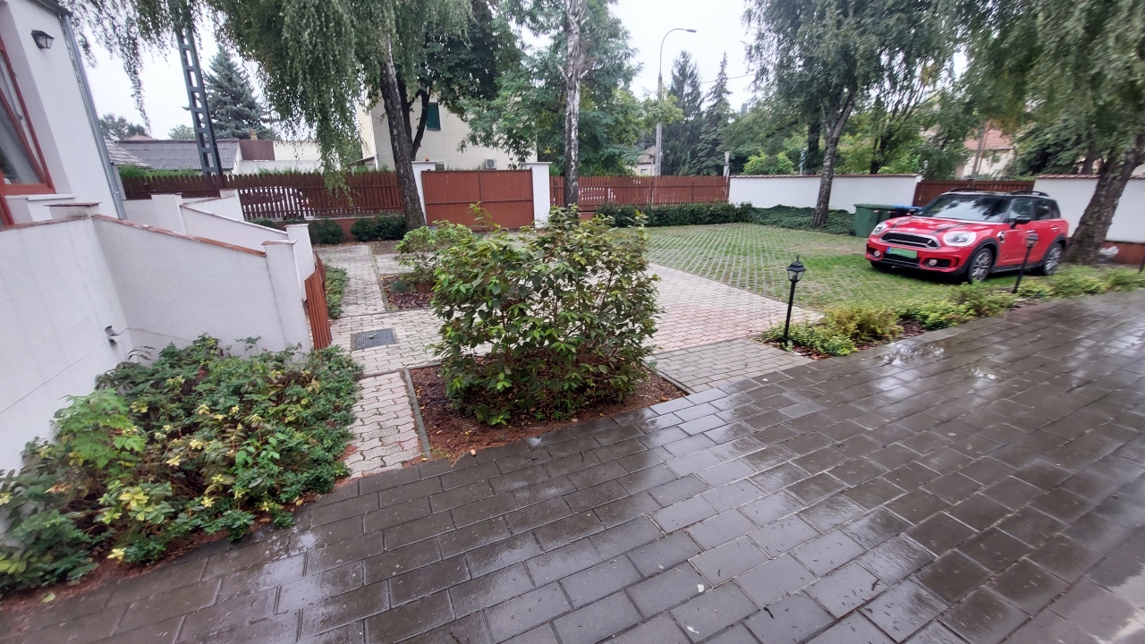 A zárt udavarban egy felszíni tágas kocsibeálló hely biztosított egy autó számára.