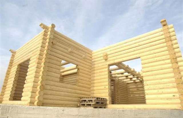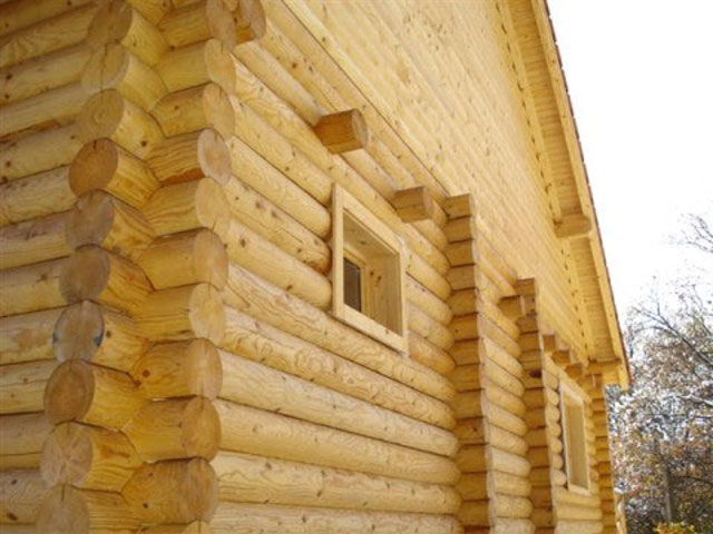 ház szabályos fűrészelt gerendákból készül, a rönkház pedig
