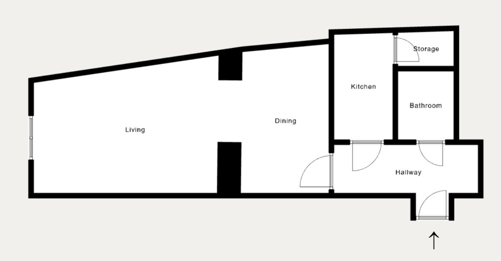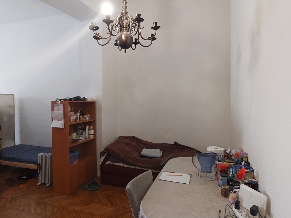 A lakás jelenlegi elosztása nappali + hall, külön konyha, fürdőszoba és spejz, amely jól alakítható a mai igényekhez. A 3,8 méteres belmagasság lehetőséget ad galéria kialakítására is, tovább növelve a hasznos teret.