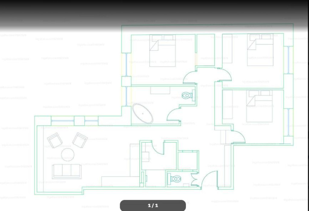 Elosztás: nappali + 3 hálószoba, 2 fürdő, külön WC