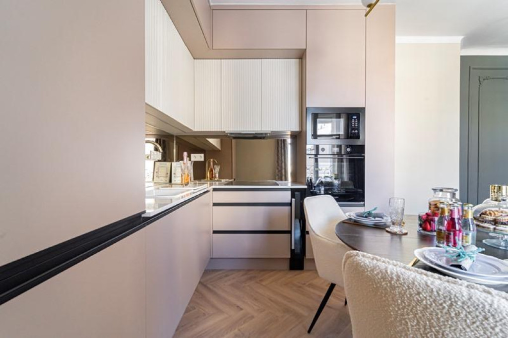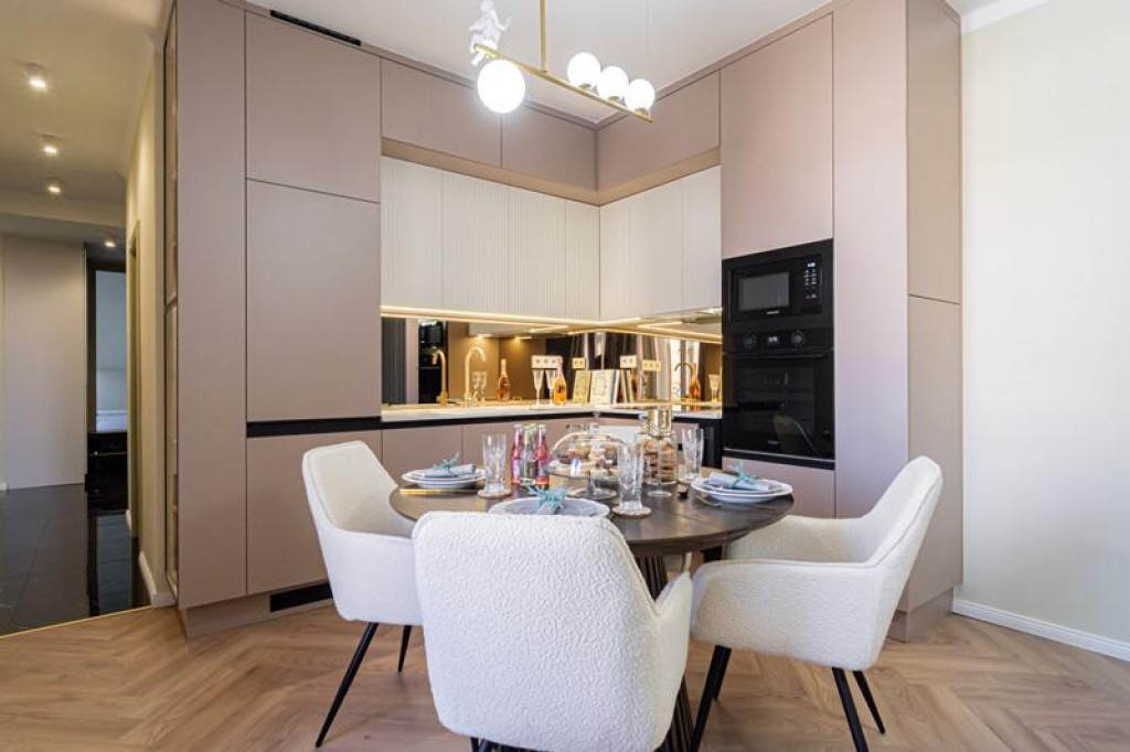 A valóságban 113 m²-es lakás egy liftes társasház legfelső, 5. emeletén helyezkedik el, és kiváló elosztással rendelkezik: amerikai konyhás nappali + 3 hálószoba + 2 fürdőszoba + külön WC. A tágas, 35 m²-es nappali a lakás központi eleme, amely ideális családi és társasági térként is.